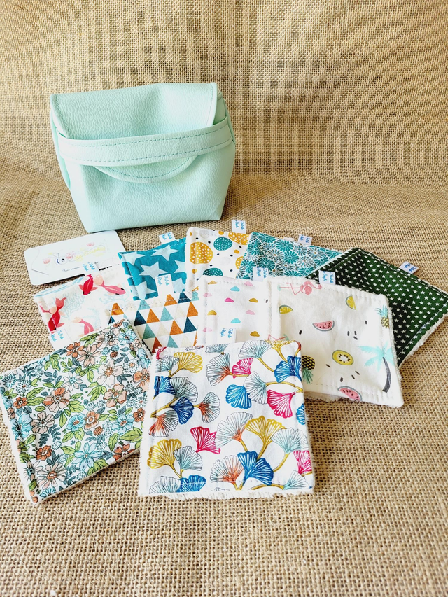 Celle-ci est proposée comme rangement de vos lingettes démaquillantes lavables, prêtes à l'emploi.